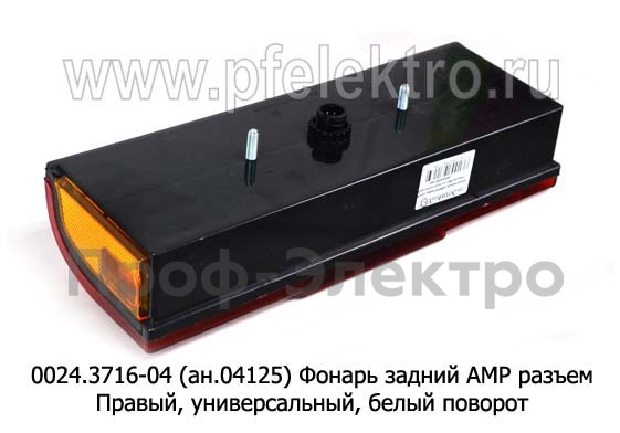 0024.3716-04R (ан.04125) Фонарь задний АМР разъем Правый, универсальный, белый поворот, Schmitz (ТАС)