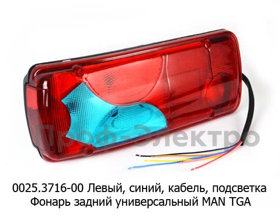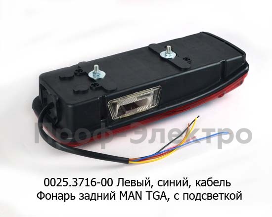 0025.3716-00L Фонарь задний с кабелем Левый (синий) с подсветкой, универсальный MAN TGA (ТАС)