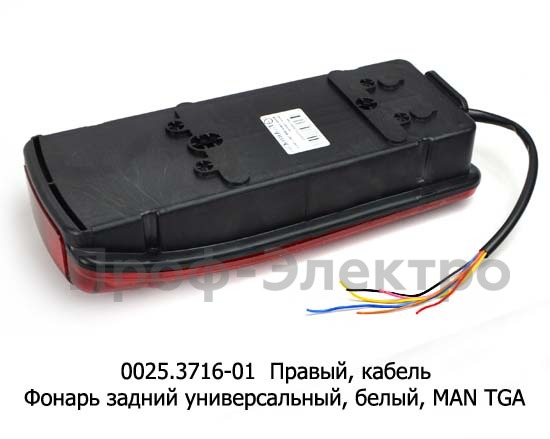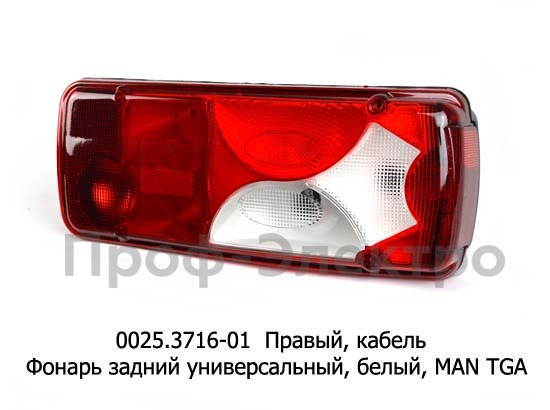 0025.3716-01R Фонарь задний с кабелем Правый (белый) универсальный, белый, MAN TGA (ТАС)