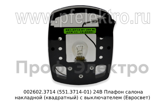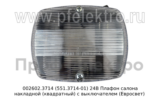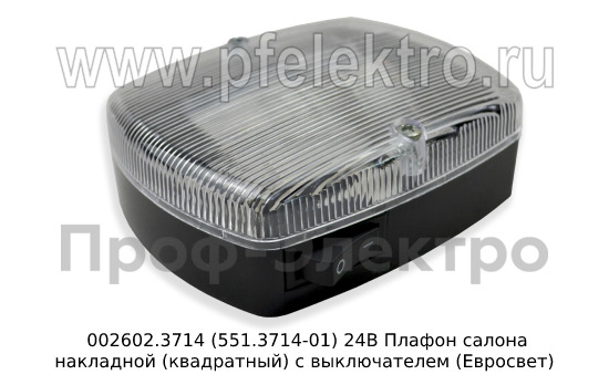 002602.3714 (551.3714-01) 24В Плафон салона накладной (квадратный) с выключателем, для автофургоны, паз, зил Грузовые Т/С (Евросвет)