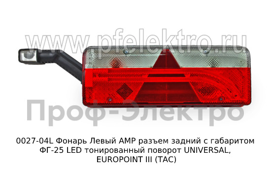 0027-04L Фонарь задний АМР разъем Левый с габаритом ФГ-25 LED тонированный поворот UNIVERSAL, EUROPOINT III (ТАС)