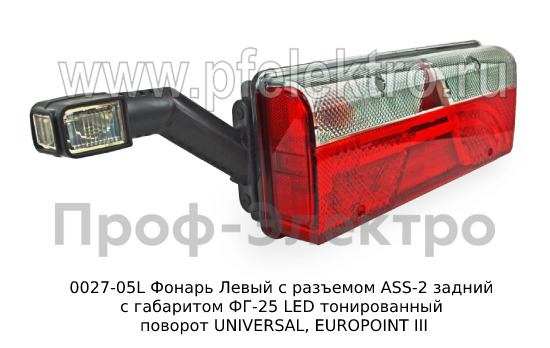 0027-05L Фонарь задний с разъемом ASS-2 Левый с габаритом ФГ-25 LED тонированный поворот UNIVERSAL, EUROPOINT III (ТАС)
