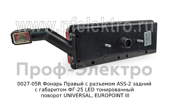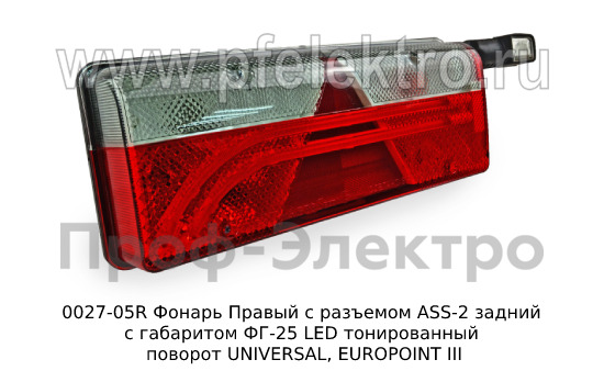 0027-05R Фонарь задний с разъемом ASS-2 Правый с габаритом ФГ-25 LED тонированный поворот UNIVERSAL, EUROPOINT III (ТАС)