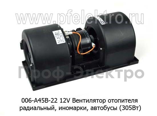 006-А45В-22 12V Вентилятор отопителя радиальный, иномарки и др., автобусы (305Вт) (SPAL)