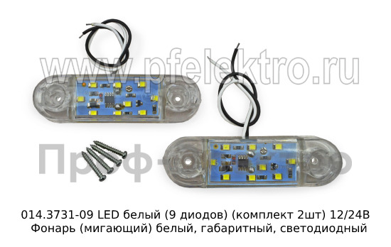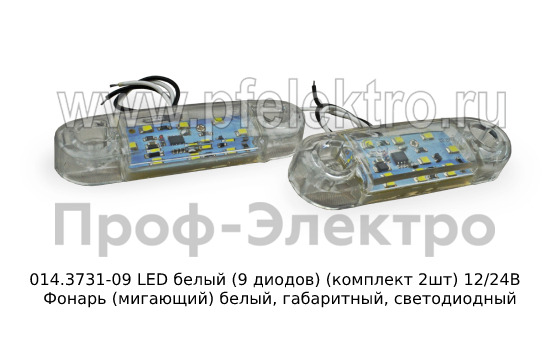 014.3731-09 LED белый (9 диодов) (к-т 2шт) 12/24В Фонарь (мигающий) белый, габаритный, светодиодный (К)