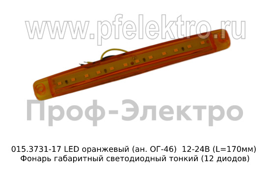 015.3731-17 LED оранжевый (ан. ОГ-46) 12/24В (L=170мм) Фонарь габаритный светодиодный тонкий (12 диодов)