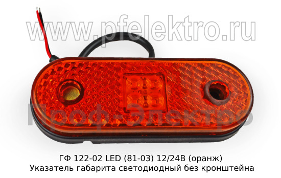ГФ 122-02 LED (81-03) 12/24В (оранжевый) - это светодиодный указатель габарита без кронштейна, предназначенный для всех грузовых транспортных средств. Он освещает дорогу в темное время суток, делая ваш автомобиль более видимым для других участников движения.