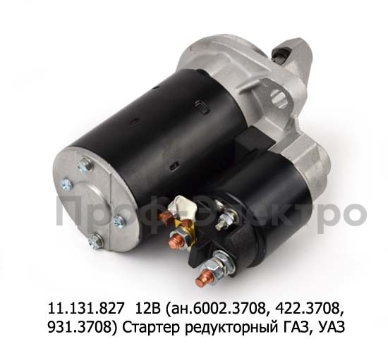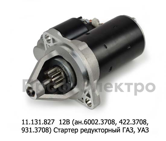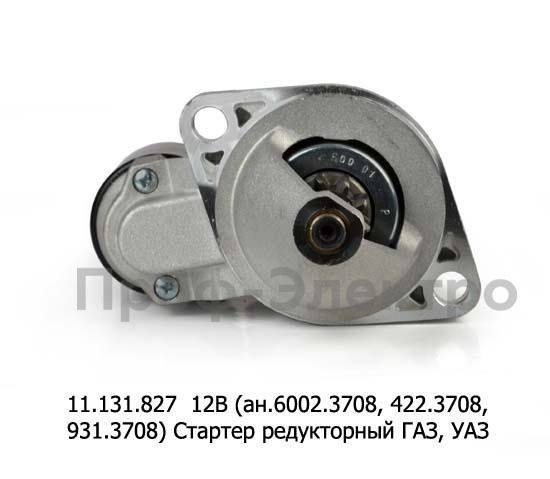 11.131.827 12В/1,4кВт (ан.6002.3708, 422.3708, 931.3708) 9зуб. Стартер редукторный для газ, уаз, с дв.ЗМЗ 402.10, 4021.10, 4025.10 (ПРАМО-Электро)