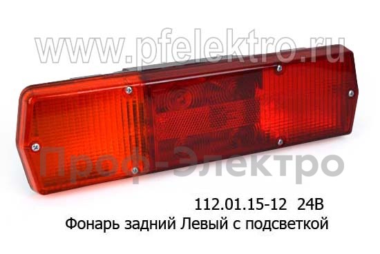 112.01.15-12 24В Левый (ан.355.3716) Фонарь задний для камаз, грузовые а/м, с подсветкой (Руденск)