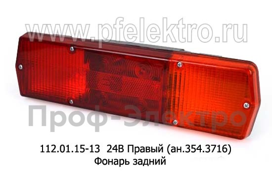 112.01.15-13 24В Правый (ан.354.3716) Фонарь задний для камаз, грузовые а/м, без подсветки (Руденск)