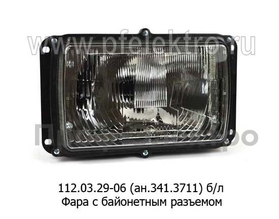 112.03.29-06 (ан.341.3711) б/л Фара с байонетным разъемом, с ручным корректором маз, супермаз, урал, Волга, уаз-3160 (Руденск)