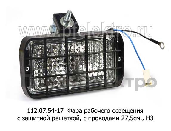 112.07.54-17 б/л Фара рабочего освещения с защитной решеткой, с проводами 27,5см., Н3 (Руденск)