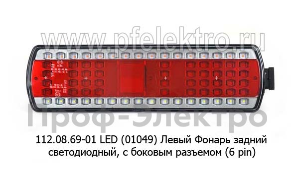 112.08.69-01 LED (01049) Левый Фонарь задний светодиодный, с боковым разъемом (6 pin) для камаз, супермаз (К)