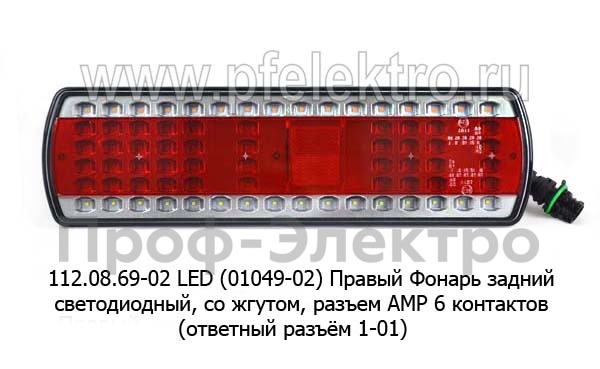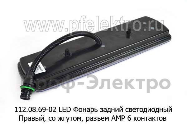 112.08.69-02 LED (5835) Правый Фонарь задний светодиодный, со жгутом, разъем AMP 6 контактов (ответный разъём 1-01) для камаз (К)