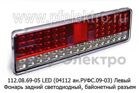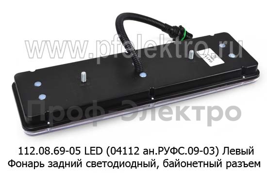 112.08.69-05 LED (ан. РУФС 09-02) Левый Фонарь задний светодиодный, со жгутом, разъем AMP 6 контактов (ответный разъём 1-01) для камаз (К)