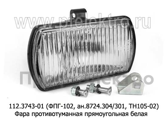112.3743-01 (ФПГ-102, ан.8724.304/301, ТН105-02) белый Фара противотуманная прямоугольная для камаз, Волга, ваз, маз, все т/с (Wassa)