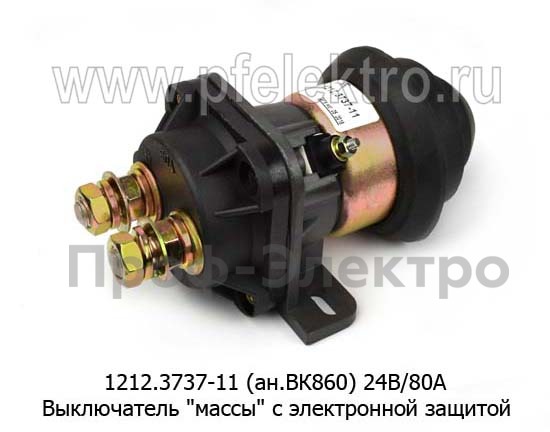1212.3737-11 (ан.ВК860) 24В/80А Выключатель "массы" дистанц. 2-х конт., с электр. защитой, управление "+", маз-5440, 544069, 643068 (Автотехнологии)