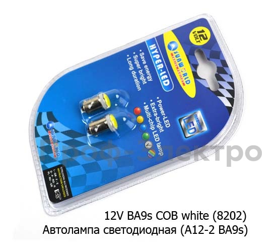 12V BA9s COB white (8202) Автолампа светодиодная, к-т 2шт. (А12-2 BA9s) габариты, все т/с 12В (К)