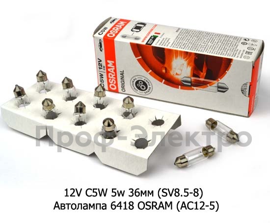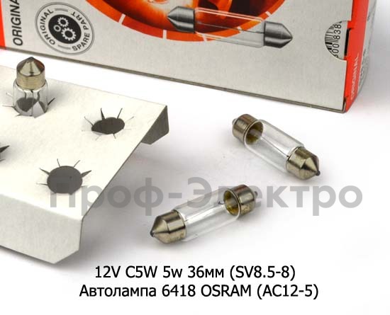 12V C5W 5w 36мм (SV8.5-8) Автолампа 6418 OSRAM (АC12-5) Осрам софитная, все т/с 12В