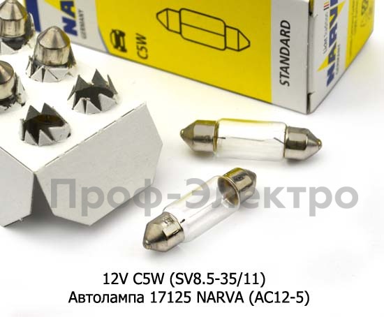 12V C5W (SV8.5-35/11) Автолампа 17125 NARVA (АC12-5) Нарва софитная 35мм , все т/с 12В