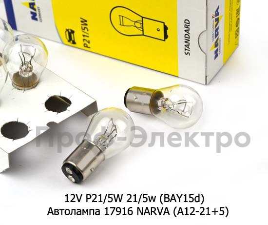 12V P21/5W 21/5w (BAY15d) Автолампа 17916 NARVA (А12-21+5) Нарва, все т/с 12В