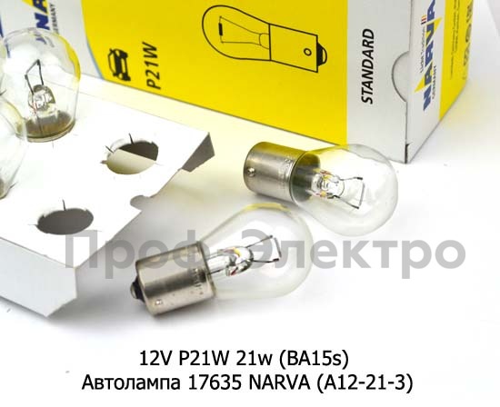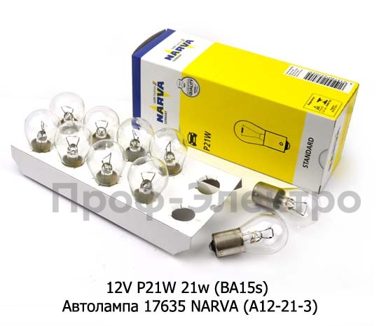 12V P21W 21w (BA15s) Автолампа 17635 NARVA (А12-21-3) Нарва, все т/с 12В