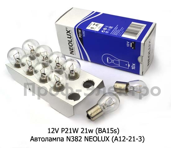 12V P21W 21w (BA15s) Автолампа N382 NEOLUX (А12-21-3) Неолюкс, все т/с 12В