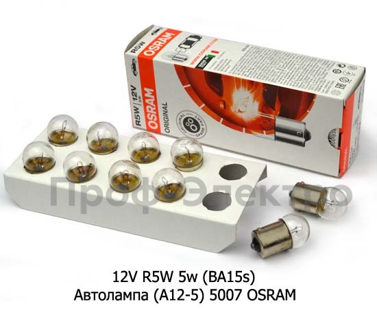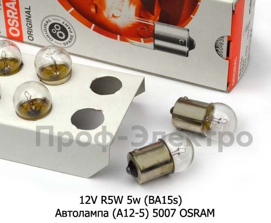 12V R5W 5w (BA15s) Автолампа (А12-5) 5007 OSRAM, Осрам, все т/с 12В