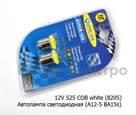 12V S25 COB white (8205) Автолампа светодиодная, к-т 2шт. (А12-5 BA15s) габарит, поворот, задний свет, все т/с 12В (К)