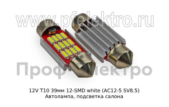 Артикул: 12V Т10 39мм 12-SMD white (АС12-5 SV8.5)