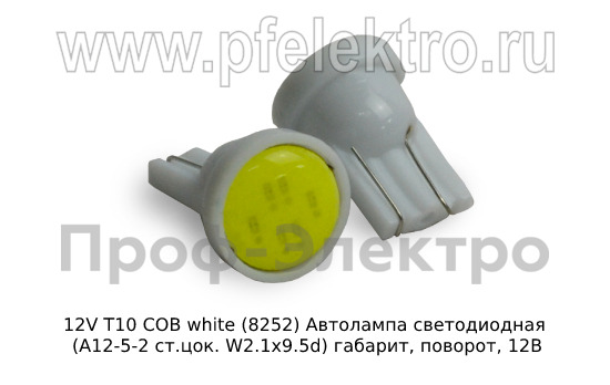 12V T10 COB white (8252) Автолампа светодиодная (А12-5-2 ст.цок. W2.1x9.5d) габарит, поворот, все т/с 12В (К)
