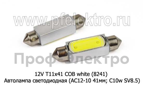 12V T11x41 COB white (8241) Автолампа светодиодная (АС12-10 41мм; С10w SV8.5) салон, номер, все т/с 12В (К)