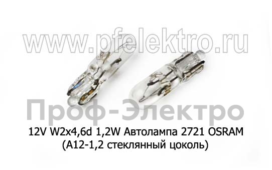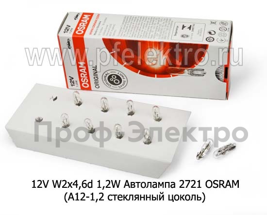 12V W2х4,6d 1,2W Автолампа 2721 OSRAM (А12-1,2 стеклянный цоколь) Осрам, все т/с 12В
