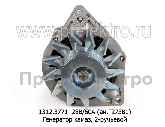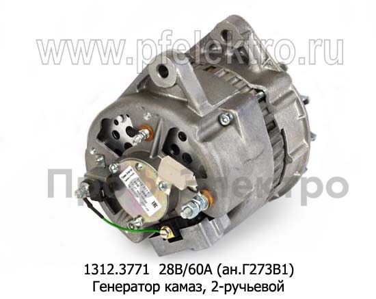 1312.3771 28В/60А (ан.Г273В1) Генератор для камаз дв.740.10-20, 740.50-360, 740.13-260, маз дв.ЯМЗ-236, -238, ЯМЗ-7511.10, 2-руч. (ЭЛТРА)