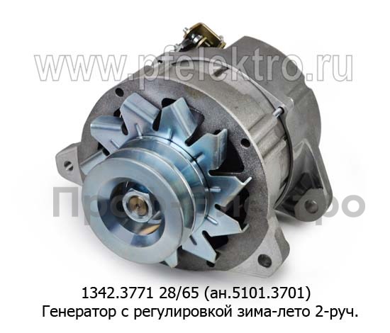 1342.3771 28/65 (ан.5101.3701) Генератор с регулировкой зима-лето дв.Д-245.7, ГАЗ -3308, -3309, 4301, 4501, 2-руч. (ЭЛТРА)