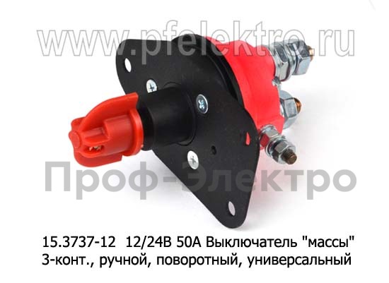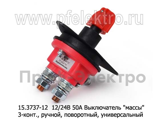 15.3737-12 (ан.1212.3737-05) 12/24В 50А Выключатель "массы" 3-х контактный, ручной, поворотный, универсальный для а/м маз, мтз, спецтехника (АП)