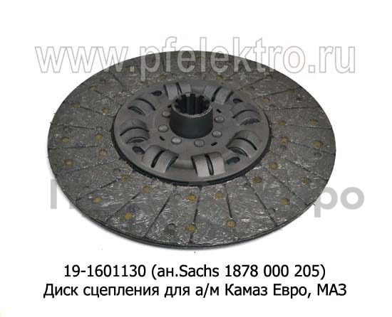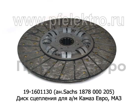 19-1601130 (ан.Sachs 1878 000 205) Диск сцепления для камаз Евро, маз (ТМ "Рубин"-ТМПО)