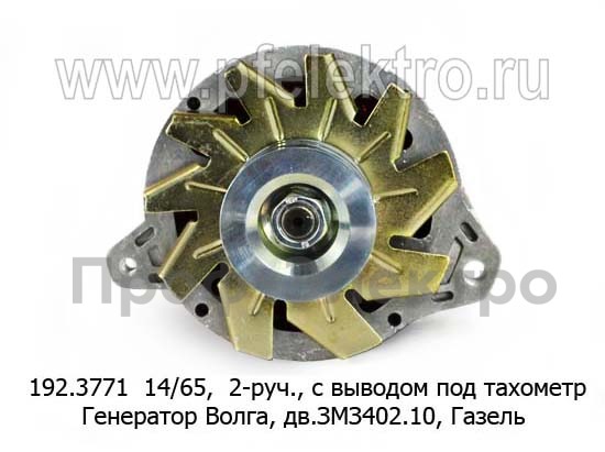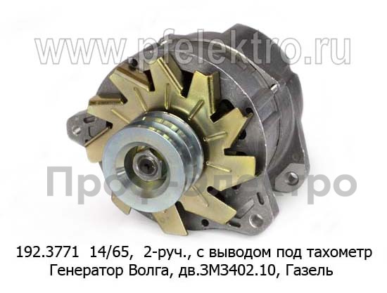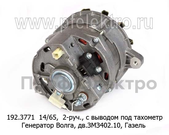 192.3771 14/65 Генератор для Волга-24, -2410, -3102, -3110, дв.ЗМЗ402.10, Газель, 2-руч., с выводом под тахометр (ПРАМО-Электро)