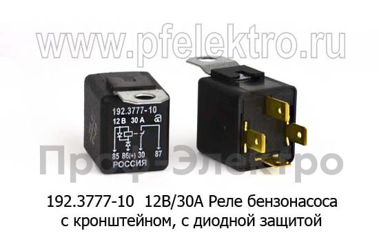 192.3777-10 (ан.782.3787-10) 12В/30А Реле бензонасоса с кронштейном, с диодной защитой (АВАР)