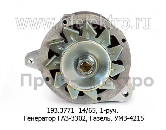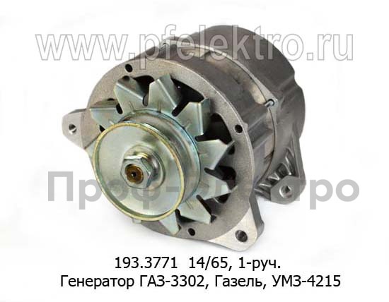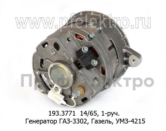 193.3771 14/65 Генератор для газ-3302, Газель, УМЗ 4215, 1-руч. (ЭЛТРА)