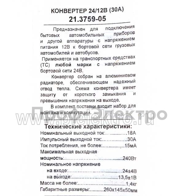 21.3759-05 ПН 24/12В-30А Преобразователь напряжения, для камаз, маз, все т/с (Энергомаш)