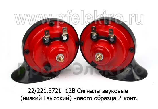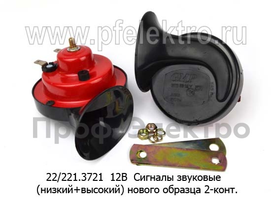 22/221.3721 12В Сигналы звуковые (низкий+высокий) нового образца, с кронштейном, 2 конт., для Газель, Соболь, все т/с 12В