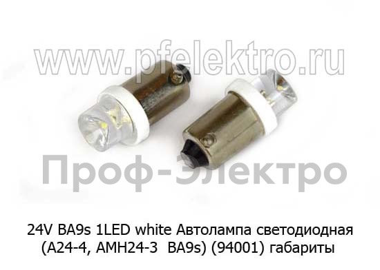 24V BA9s (1LED) white (94001) Автолампа светодиодная (упаковка - 20шт.) (А24-4, АМН24-3 BA9s) габариты, все т/с 24В (К)