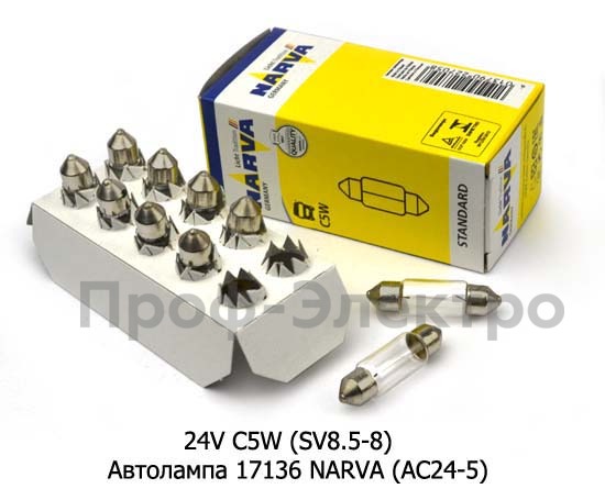 24V C5W (SV8.5-8) Автолампа 17136 NARVA (АC24-5) Нарва софитная, все т/с 24В