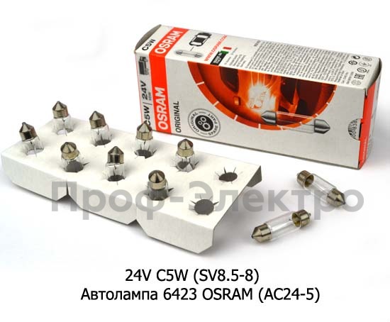 24V C5W (SV8.5-8) Автолампа 6423 OSRAM (АC24-5) Осрам софитная, все т/с 24В