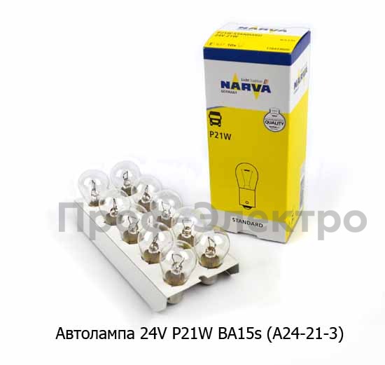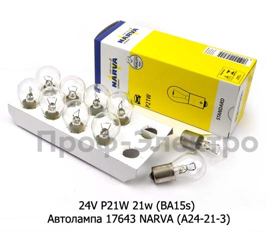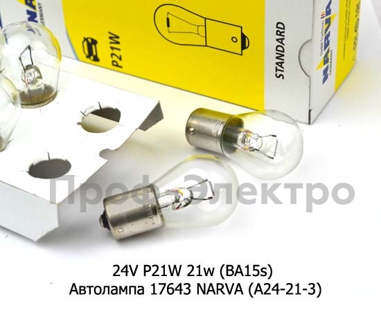 24V P21W 21w (BA15s) Автолампа 17643 NARVA (А24-21-3) Нарва, все т/с 24В