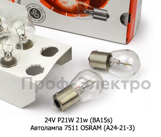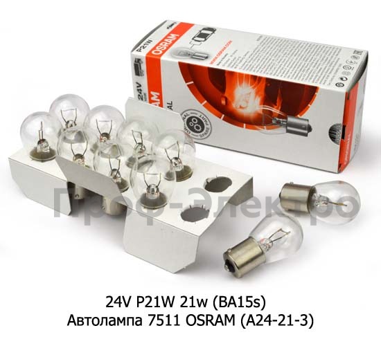 24V P21W 21w (BA15s) Автолампа 7511 OSRAM (А24-21-3) Осрам, все т/с 24В