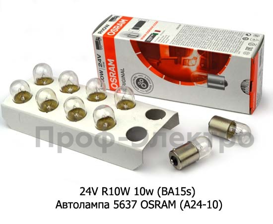 24V R10W 10w (BA15s) Автолампа 5637 OSRAM (А24-10) Осрам, все т/с 24В