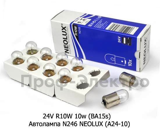 24V R10W 10w (BA15s) Автолампа N246 NEOLUX (А24-10) Неолюкс, все т/с 24В