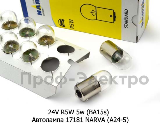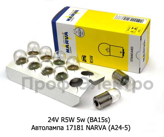 24V R5W 5w (BA15s) Автолампа 17181 NARVA (А24-5) Нарва, все т/с 24В